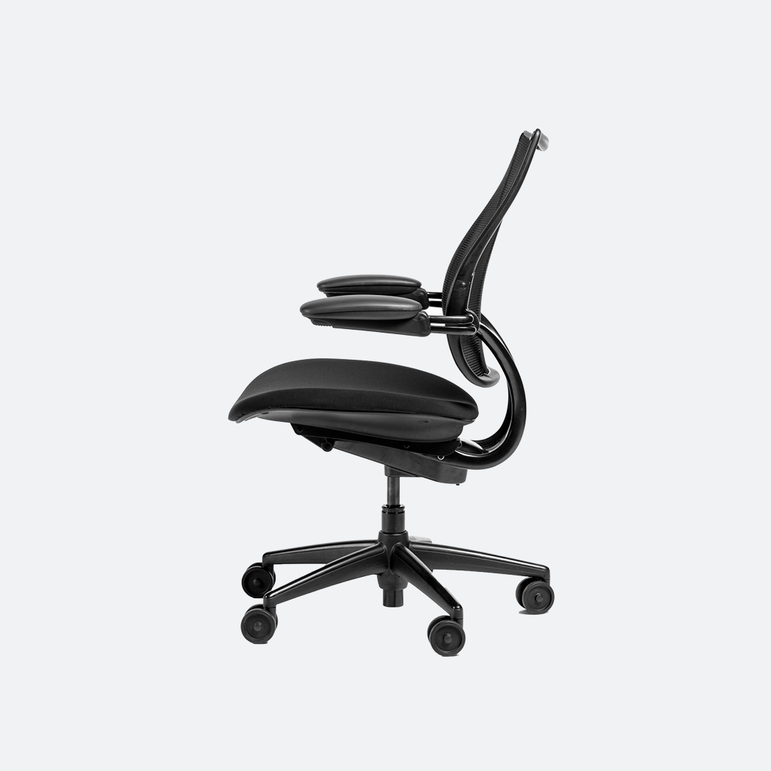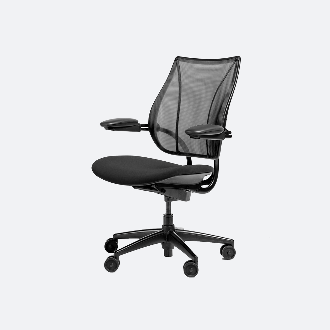 The Liberty Task chair designed by Niels Diffrient is an intelligent mesh task chair engineered to provide automatic lumbar support for every user, as well offering simplicity and complete ease of use. Liberty was designed to offer a unique, minimal aesthetic and to provide custom comfort for every person who sits in it.